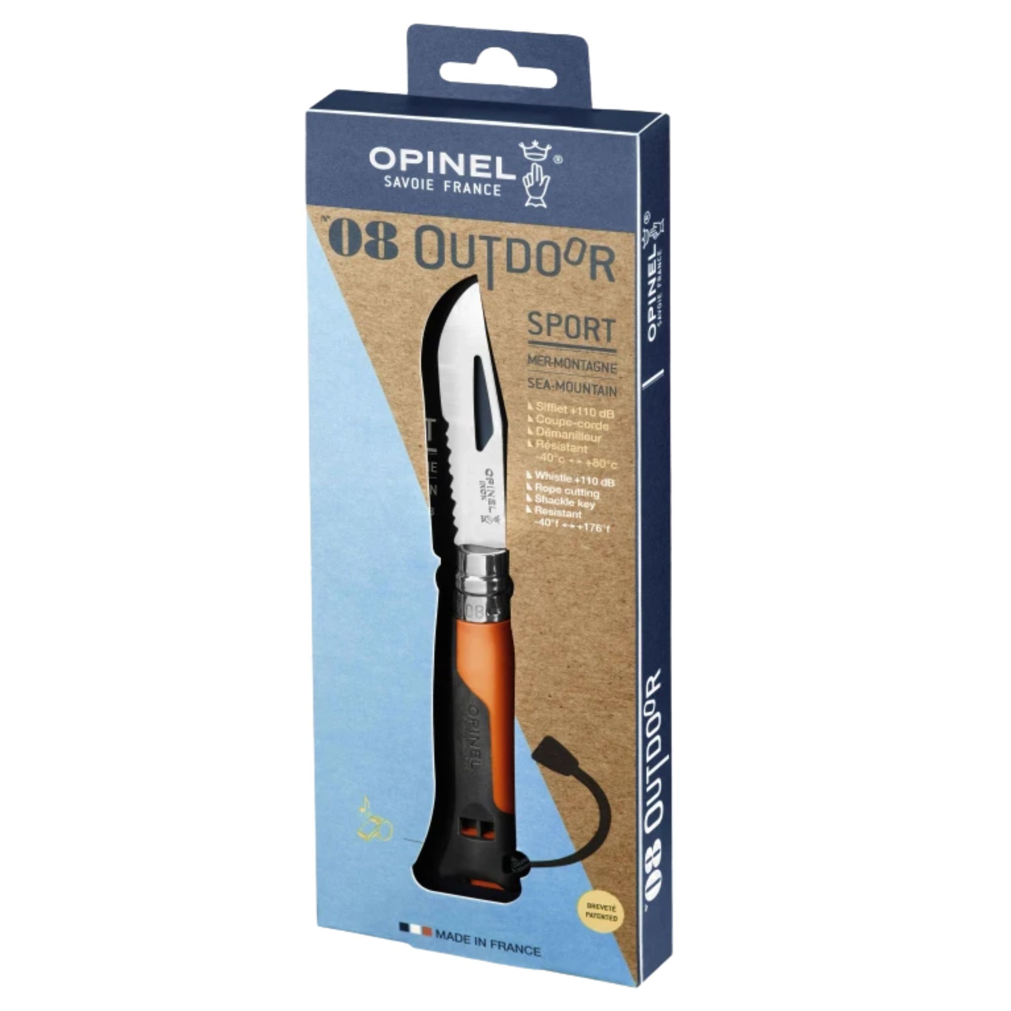 La navaja Opinel N8 Outdoor de Opinel es una herramienta versátil y robusta, ideal para actividades al aire libre. Diseñada con una hoja de acero inoxidable martensítico, ofreceuna excelente resistencia a la corrosión a la vez que garantiza un corte preciso. Su mango inyectado en polímero garantiza un agarre cómodo y seguro, incluso en condiciones húmedas o extremas. El anillo de seguridad Virobloc bloquea la hoja para mayor seguridad durante el transporte o el uso. Además, este modelo incorpora un práctico silbato para señalizar su presencia en caso necesario.
